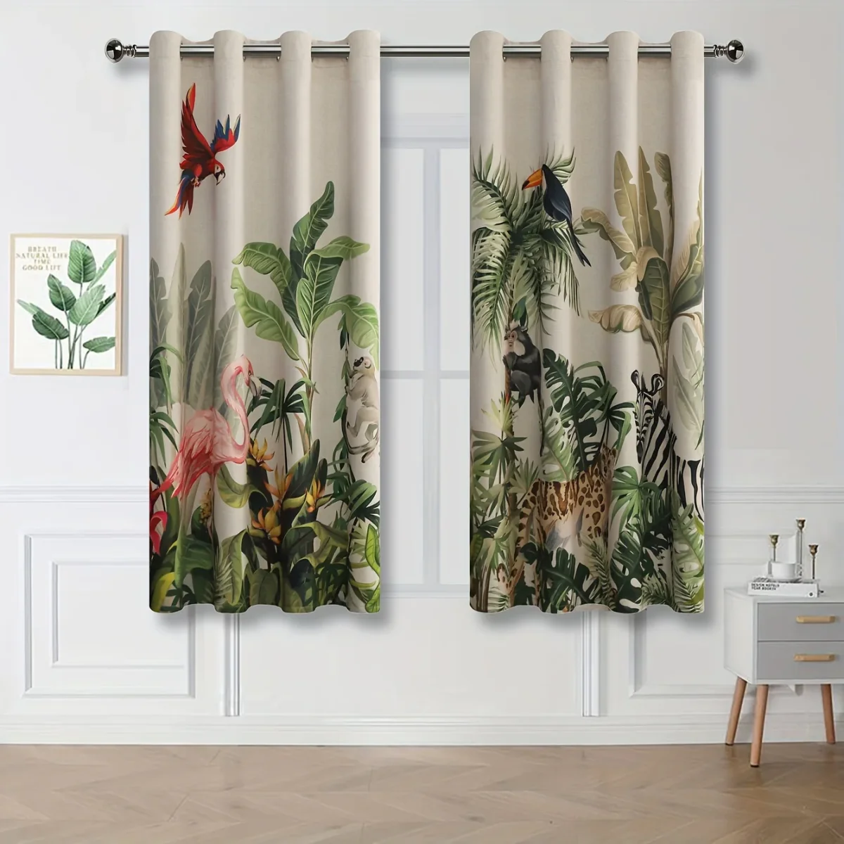 Breng de rust en schoonheid van de natuur in je huis met de Rainforest Verduisterende Gordijnen. Met hun prachtige dierenprint en hoogwaardige bedrukking, zijn deze gordijnen perfect voor slaapkamers, woonkamers, keukens en kantoren. Het verduisterende materiaal zorgt voor privacy en comfort, terwijl het moderne oogjessysteem zorgt voor eenvoudige ophanging. Deze wasbare polyester gordijnen zijn zowel praktisch als stijlvol en geschikt voor elk seizoen.